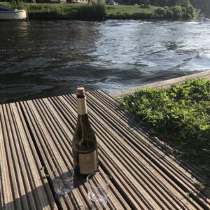 Vanmiddag hadden Michel en ik een missie: we wilden een feestelijk cadeau sturen naar iemand die begin volgende week iets te vieren heeft (ik denk niet dat die persoon mijn blog leest, maar ik zou het jammer vinden om ons te spoileren, dus ik hou het bewust vaag), dus we gingen tijdens ons reguliere boodschappenloopje, waarbij we ofwel de Hoogvliet ofwel Albert Heijn met onze aanwezigheid vereren, eerst langs onze favoriete cadeauwinkel: La Bordelaise op de Nieuwe Rijn. De Nieuwe Rijn is op het moment op zich een gigantische corona-grabbelton, want er zijn meerdere ijssalons waar iedereen in de rij staat, en daarna moeten die ijsjes natuurlijk geconsumeerd worden, maar gelukkig is de stoep daar nu even groot genoeg. Als daar straks weer terrasjes zijn, wordt het helemaal een uitdaging om daar te lopen, maar dat zien we na 1 juni wel. Hoe dan ook, bij Yvo van La Bordelaise was het redelijk rustig, en omdat we binnenkwamen toen er al een ruime 5 in de klok zat, was het een mooi moment om een houtgerijpte Menetou-Salon open te trekken om te testen of het een goede wijn was. Natuurlijk was het dat, maar we konden dat oordeel rustig formuleren terwijl hij ons uitgebreid adviseerde over wat een mooi cadeau was voor de niet nader te noemen recipient. We waren zo gelukkig met de wijn dat we een fles voor thuis kochten, en toen kregen we van Yvo ook de geopende proeffles mee, en twee plastic wijnglazen voor onderweg.