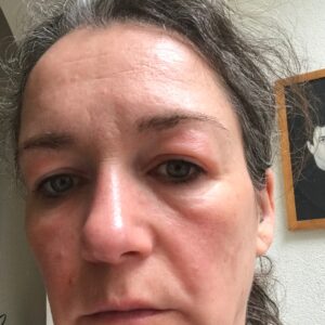 Een van weinige zekerheden in het leven is wat mij betreft dat ik gegarandeerd, op het moment dat ik iets doe om gaafheid te vieren, geconfronteerd word met iets totaal ongaafs. Ik heb net een blog geschreven over dat ik een fotoshoot had genomen om te vieren dat ik er zo goed uitzag, en zo’n beetje direct nadat ik op ‘publiceren’ had gedrukt, gebeurde er iets raars met mijn gezicht. Dat zul je altijd zien, als ik 2 en een halve maand binnenzit is er niks aan de hand, maar zodra ik weer naar buiten mag, zwellen mijn ogen op en krijg ik rode schurftige plekken in mijn gezicht. Het kan natuurlijk zijn dat dit een soort kosmische balans is, om me te straffen omdat ik mezelf zo mooi vond na de fotoshoot, maar los van het feit dat ik niet in kosmische balansen geloof, had ik nog bijna geen foto’s gedeeld, dus het was nog lang geen tijd om me te straffen. In elk geval waren mijn ogen vrijdag een beetje dik en jeukten mijn oogleden, op zaterdag was het erger, en op zondag zag ik eruit als een leproze Quasimodo, want toen was het behalve dik en rood ook schurftig. Bovendien had ik geen idee wat het veroorzaakt had: het leek me een allergische reactie, maar voor wat? Misschien was het hooikoorts, misschien zelfs de haartjes van de eikenprocessierups. Ik heb de symptomen gegoogeld en ik heb zelfs even gedacht dat ik corona had (sommige patiënten hebben ontstoken ogen), maar daarvoor moest er pus uit mijn ogen komen, en dat was gelukkig niet het geval – het was een huidprobleem, geen oogprobleem. Gelukkig.