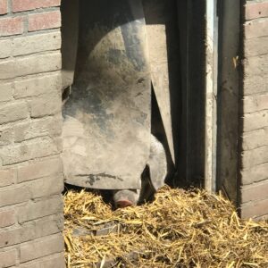 Want zo’n kinderboerderij is echt een totaal andere wereld dan die waarin ik me meestal begeef. Ik heb geen kinderen, dus dat scheelt natuurlijk al flink, maar ik ben verder nogal een vrouw van de stad, compleet met alle opgefoktheid die daarbij hoort. Toen ik halverwege de vergadering naar het toilet ging (niet omdat ik zo nodig moest, maar wel omdat ik me geen 2,5 uur achter elkaar kan concentreren, en omdat ‘ik ga naar de wc’ als excuus om op te staan en rond te lopen in het algemeen beter geaccepteerd wordt dan ‘ik moet nu echt even wandelen want ik zit al 10 minuten niet op te letten’), zag ik allerlei briefjes hangen over activiteiten in de kinderboerderij. Je kan er je verjaardag vieren en cupcakes versieren, dat is natuurlijk al awesome, maar het allermooiste was de aankondiging van het feest ter gelegenheid van de 13de verjaardag van een koe (helaas slechts voor genodigden). Heerlijk, dat soort dingen – zo ontzettend niet bezig met de waan van de dag. Na afloop van de vergadering heb ik mezelf even beloond door nog een half uur rond te hangen en naar de dieren te kijken. Ik heb een verlegen meisje uitgelegd dat ze best een geit mocht aaien, naar de koeien en de paarden gekeken en bij de varkens mijn spirit animal gevonden (zie de foto hierboven). Normaal hou ik niet zo van de natuur, want die is vies en onberekenbaar, maar mijn micro-vakantie naar de kinderboerderij van de Merenwijk kwam precies op het goede moment. Ik heb er best nog wel een vergadering over om daar vaker heen te gaan!
