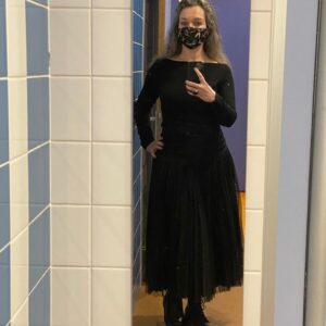Leukste outfit van de maand: Ik had nog een grote tulen rok van Cora Kemperman, die ik droeg met een zwart shirt en mijn Dr. Martens, en dat vond ik persoonlijk echt heel erg leuk. Beetje nineties alto, maar goed, in de nineties was ik ook een alto, dus daar ga ik niet zo mee zitten. Mijn allerlievelingsste lievelingsoutfit werd ook gedragen (een jurk van LaDress met cowboylaarzen), maar daarvan wist ik al dat die leuk was.