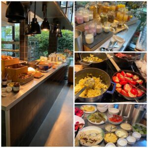 Het ontbijt Het ontbijtbuffet was het absolute hoogtepunt van het verblijf – er was echt alles, van croissantjes en brood, via pannen met goed spek en voortreffelijke scrambled eggs en allerlei zuivel en smoothies, naar een mooie selectie zoet en hartig beleg (ook hummus en salades bijvoorbeeld). De koffie kwam uit een groot apparaat en deed me weinig, maar daar stond een prima selectie aan thee tegenover. Wij waren relatief laat aan het buffet, maar ze bleven maar dingen aanvullen, zodat ik echt verse scrambled eggs kon eten en het mooiste chocoladebroodje dat ik in mijn leven geconsumeerd heb – warm uit de oven en werkelijk volmaakt.